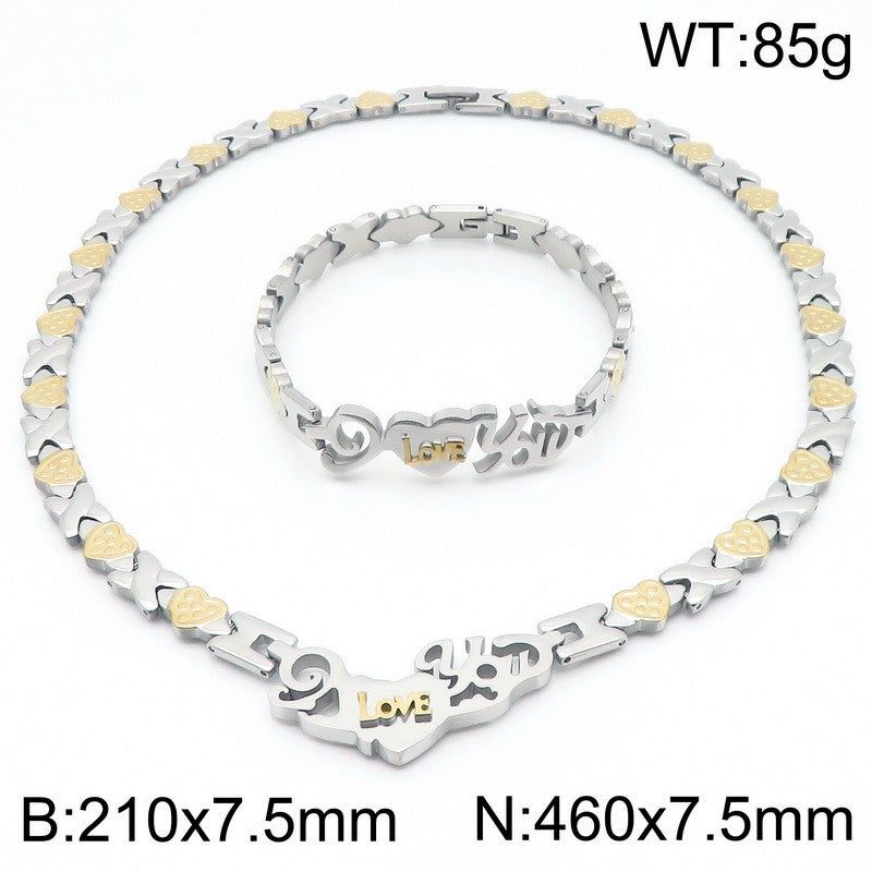 Kalen Stainless Steel 18K Gold Plated Loop Chain Heart Charm Wholesale Bracelets Necklace Jewelry Set for Women